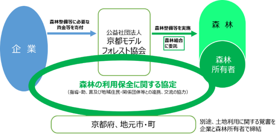 | 環境評価 | 京都府森林吸収量認証制度の概要:京都府から認証機関としての指定を受け、植栽・間伐といった森林整備により、持続可能な森林管理が見込まれる森林における二酸化炭素吸収量の認証を行います。 |